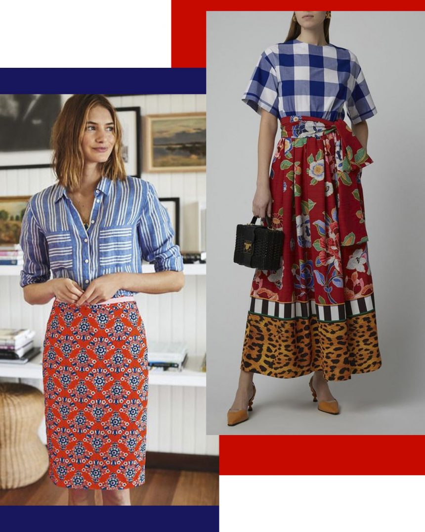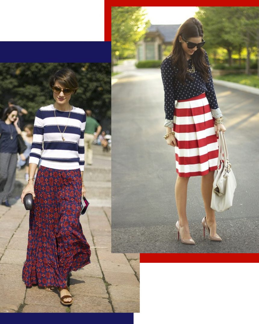 Agora mas as que querem se jogar no look diferentão, olha essas duas referências. Tem estampa de tudo quanto é jeito mas todas combinadas entre o Azul e o Vermelho! Detalhe para a soma do amarelo no segundo look.