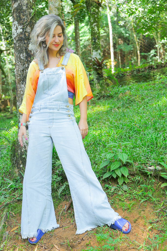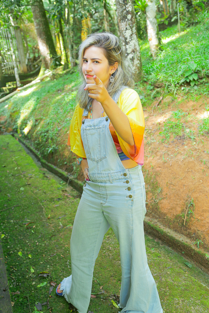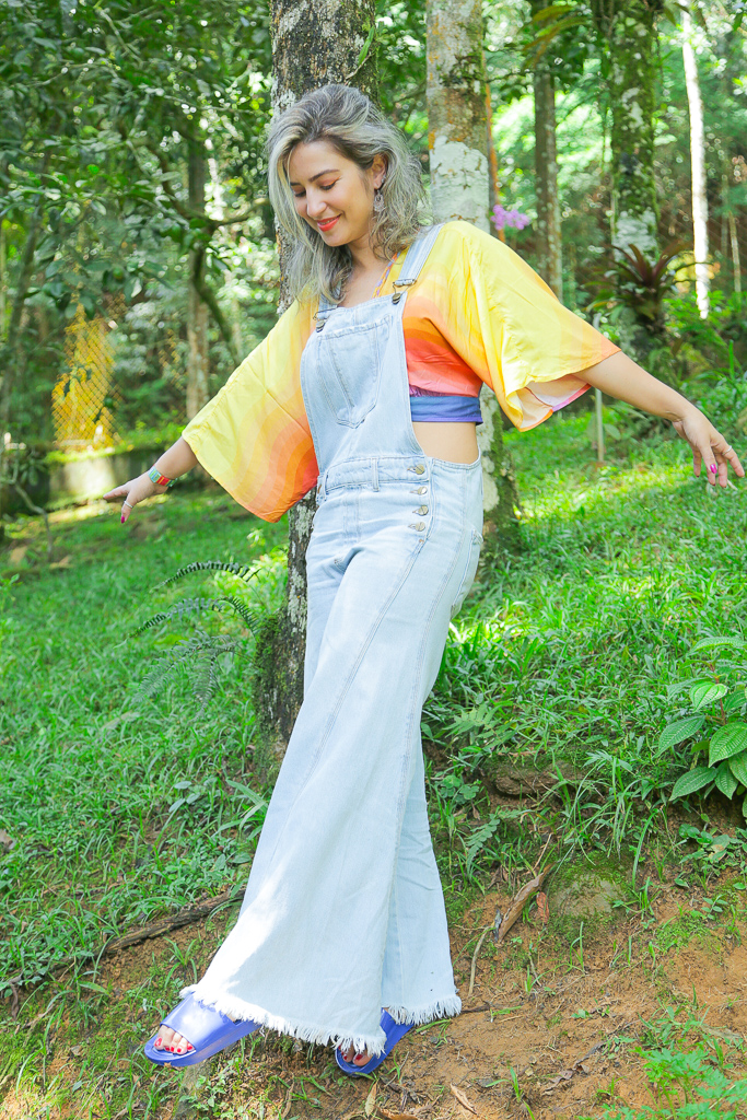 Um vício chamado jardineira Jeans que combina com todas as cores do Arco-íris! Esse vício vem desde criancinha. Não sei explicar de onde vem mas você logo vai me ver feliz de jardineira por aí. Acho confortável, bonito e me sinto uma moleca como falavam no meu trabalho: Levada da Breca sabe? Rs.
