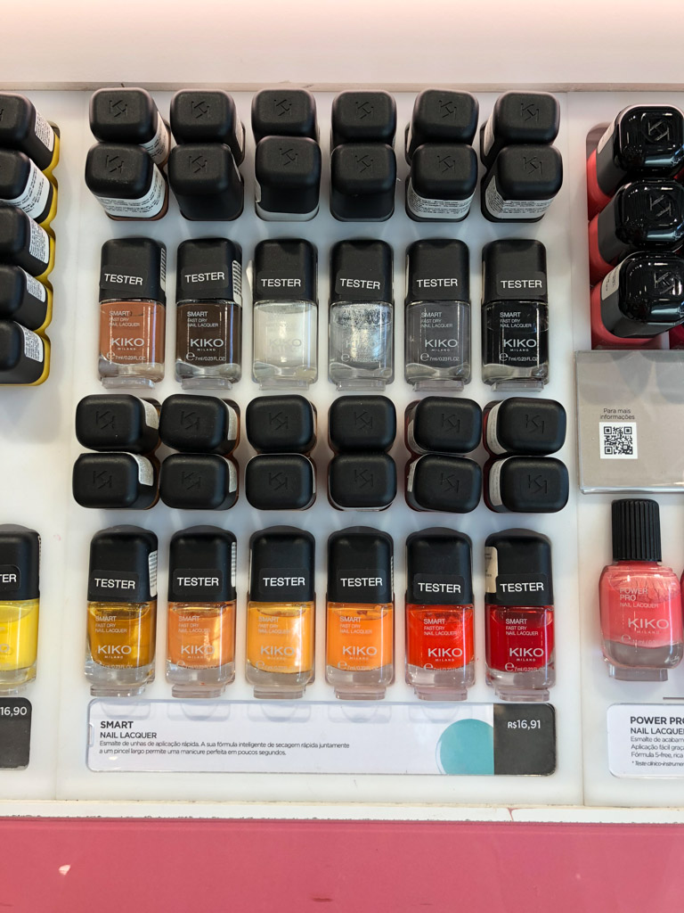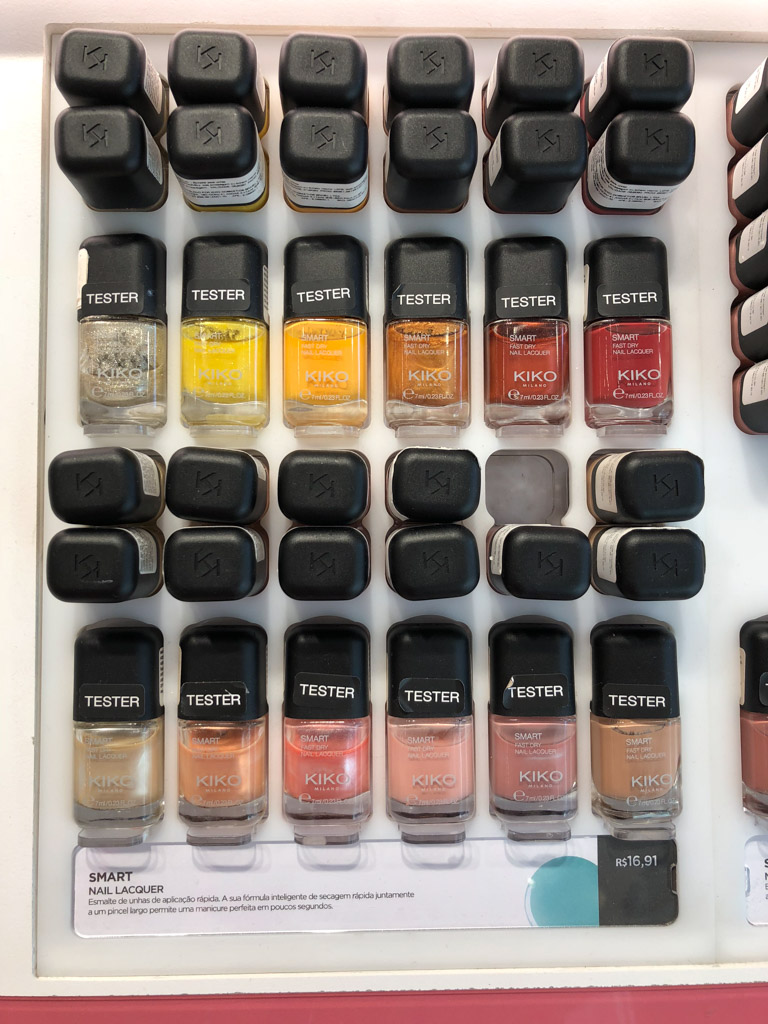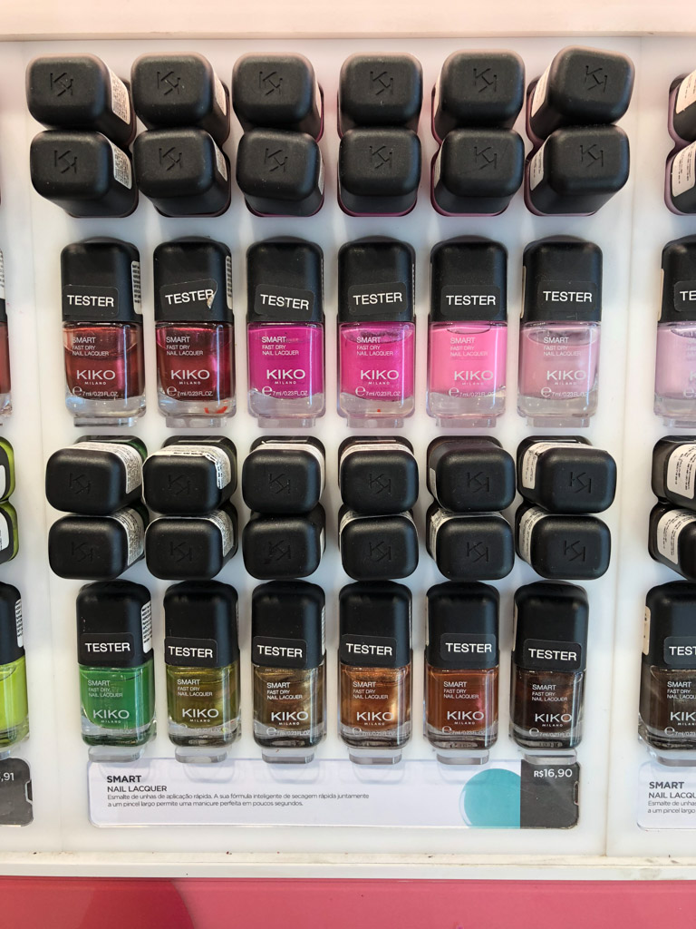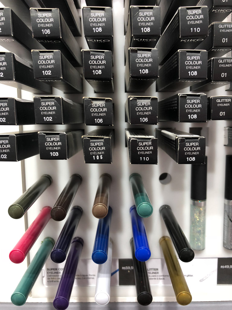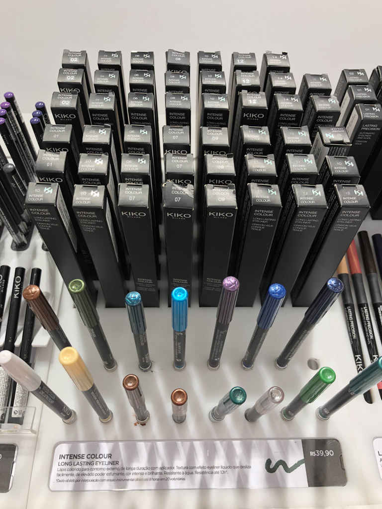 Nosso primeiro achados coloridos vai ser na loja Kiko Milano. Uma rede italiana que desembarcou aqui no Brasil em São Paulo.
