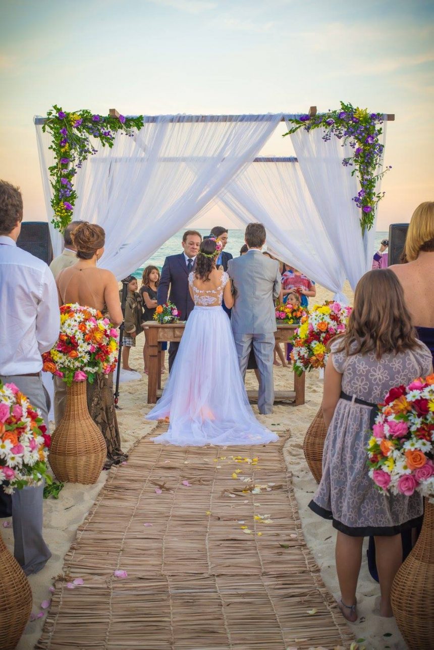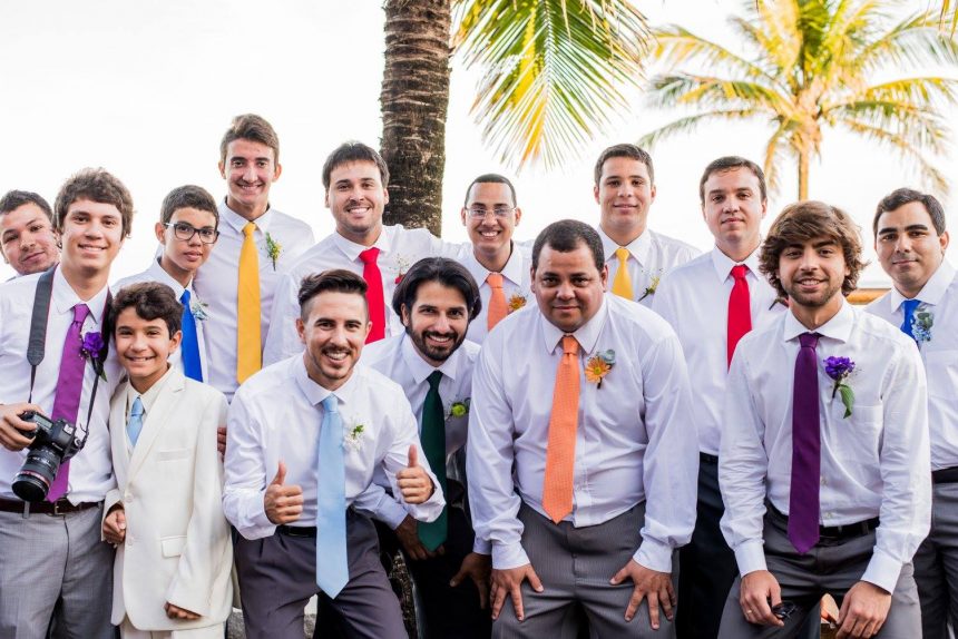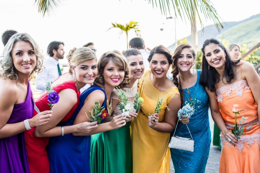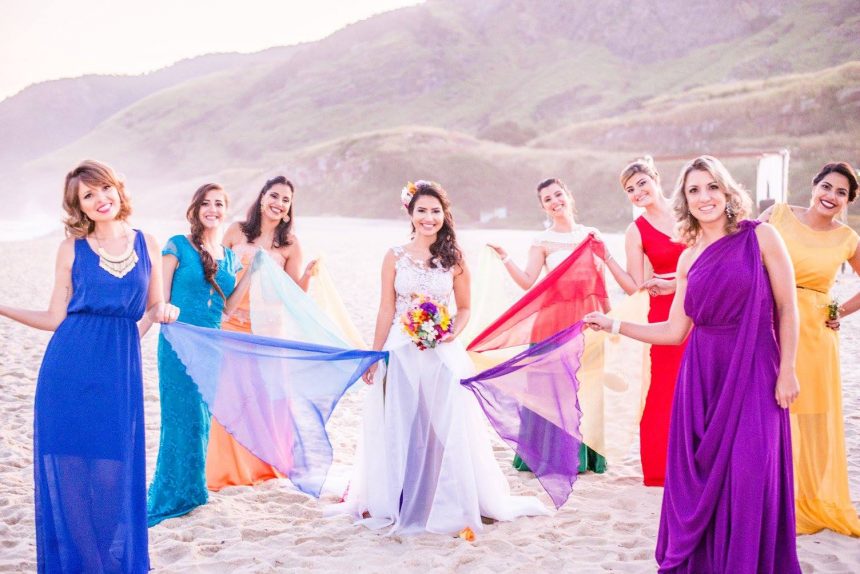 Escolhemos 7 casais de padrinhos. Cada um representava uma cor do arco-íris!
