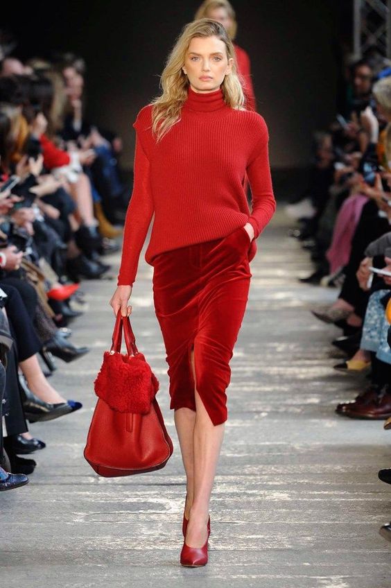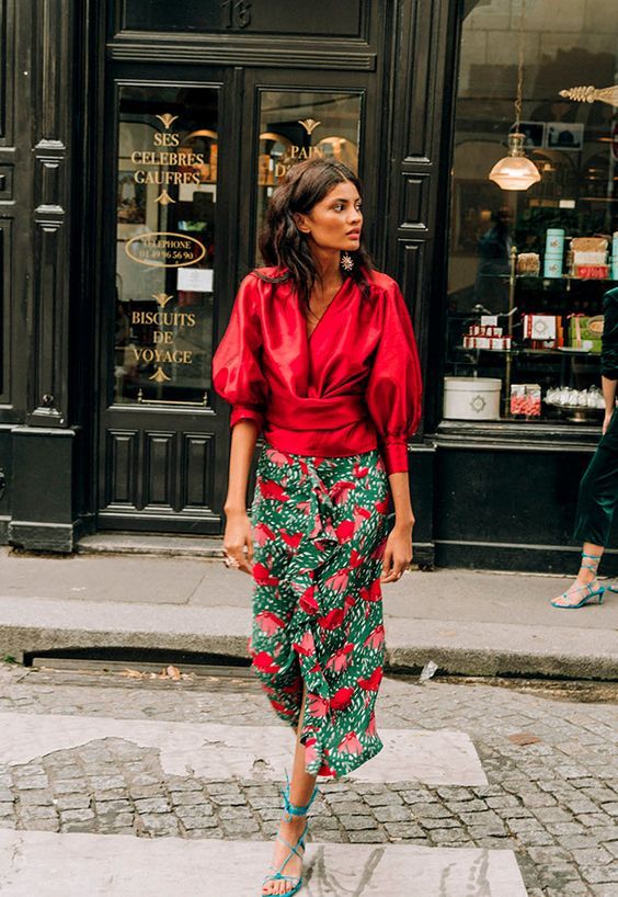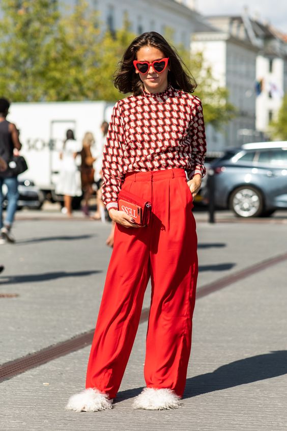 Vou mostrar vários looks vermelhos com diferentes combinações de cores.