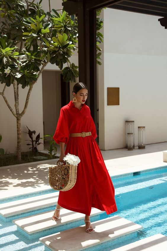 Esse também segue a mesma linha, mas adorei o detalhe terroso do cinto e da bolsa. Amo também um look todo vermelho com batom vermelho combinando!