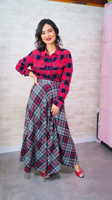 Duas peças super antigas que nunca tinha pensado em usá-las juntas. Principalmente por ser as duas Xadrez. Apesar da estampa ser xadrez, suas tramas são diferentes e possuem cores próximas, sendo o vermelho presente nas duas peças. Para finalizar, o toque azul tanto do brinco como dos sapatos trouxeram ainda mais personalidade para essa combinação. A make foi feita com…