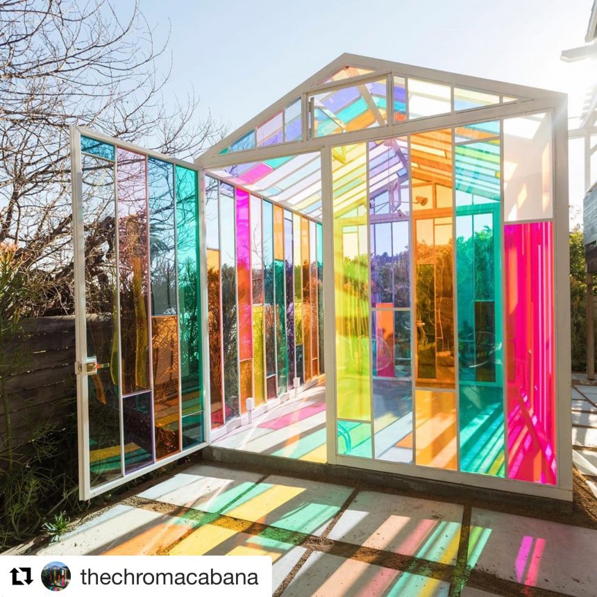 💙 O que é: Uma cabana multicolorida de vidro que fica em um Jardim de Suculentas. Um espaço usado para fotos, filmagens, work shops, meditação, arte, etc.